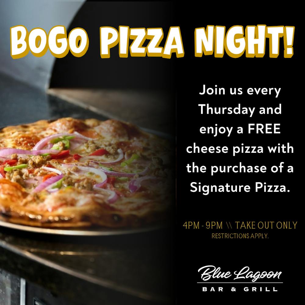 Starting Thursday, November 6, buy 1 specialty pizza and receive 1 free cheese pizza (take out only). From 4pm-9pm every Thursday. One per family limit.